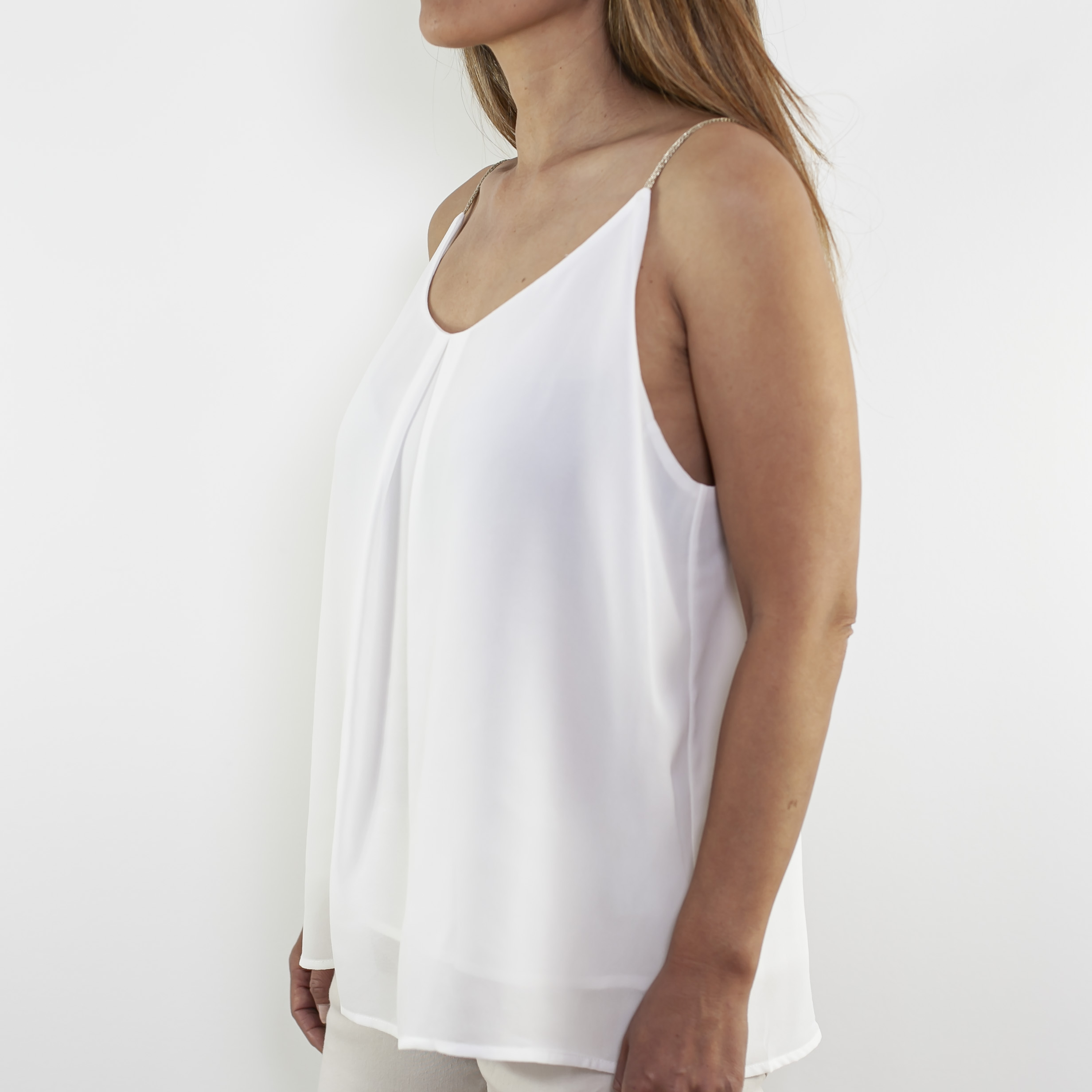 Enkel top med tynde guldstropper. Løs pasform i lækker kvalitet.