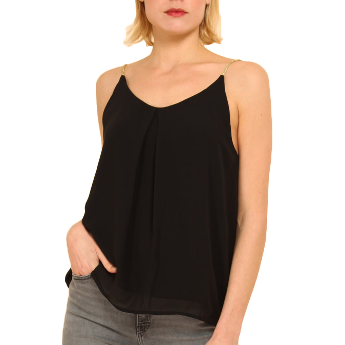 Enkel top med tynde guldstropper. Løs pasform i lækker kvalitet.